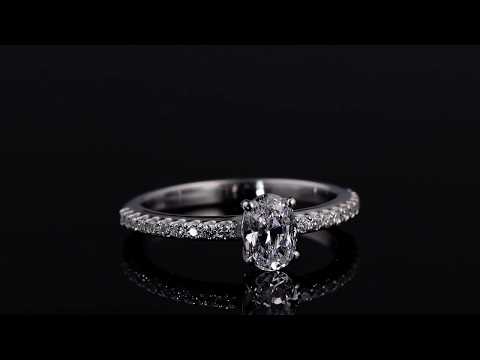 - Center oval brilliant cut diamond: at least 0.50 carats, VS clarity or better, F color or higher. A GIA certificate will be included.